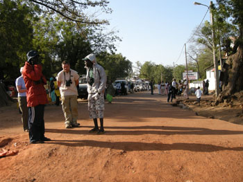 Once the ferry had docked the taxis again tried to jump the queue, turning a calm, well humoured situation into bedlam and Phil was again faced with people beckoning him onto the ferry, whilst others were telling us to stop and trying to impede our progress. Calm was somehow soon restored and we took our place on the front of the ferry. In order to keep this report to a manageable size, suffice to say that what I described before, pales into insignificance in comparison to what was waiting for us. This includes our vehicle being hit by a lorry and Judy witnessing Mustapha having his pocket picked, seconds before Mus realised it himself and the ensuing mayhem that followed. Again after several hours and with several palms greased plus heated discussions with the machine-gun toting soldiers about the Gambians’ right to preferential treatment, we found ourselves being escorted to the front of the queue. I’m sure for all those budding Michael Palins this would probably have been a breeze: to us it was a kaleidoscope of emotions, mainly ones of total helplessness and of fascination at all that was going on around us. This was truly Africa in the raw and an experience we will never forget or regret.